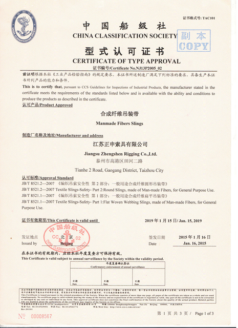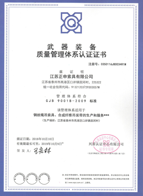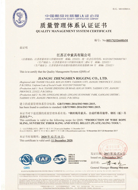 Jiangsu Gostern Rigging Co., Ltd. is established in the year 2001 in China. The company covers an area of 33000 square meters, more than 600 employees. It is a specialized slings company that can design, manufacture, and market. The company has a strong technical ability, scientific technology procedures, testing equipment, and a perfect quality system. The company has achieved the ISO9001-2015 quality management system certificate. Product quality has been insured by the People's Insurance Company of China.