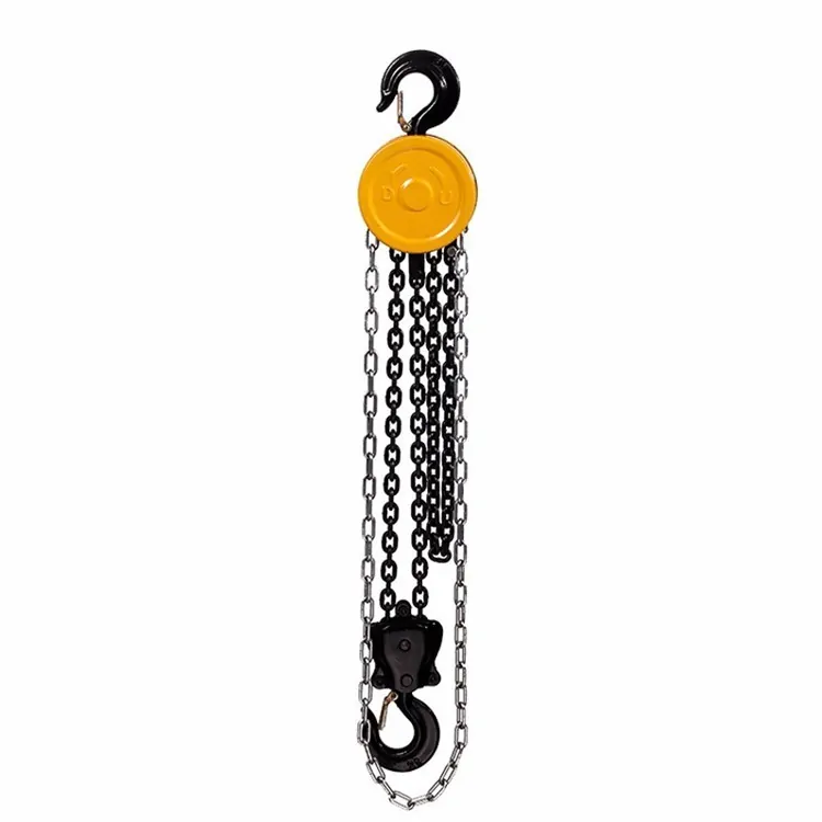 The chain hoist pulls the manual chain and the hand sprocket to rotate, and the friction plate ratchet and the brake seat are pressed together for common rotation. In this way, the lifting sprocket set on the spline hole gear drives the lifting chain, thereby lifting the weight smoothly. It adopts a ratchet friction disc type one-way brake, which can break on its own under load, and the pawl meshes with the ratchet under the action of a spring.