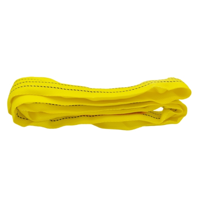 Round sling is a continuous loop made from polyester yarn encased in a sleeve of polyester or Nylon fabric. The sleeve is so constructed that it protects the internal rows of yarn filament and keeps them in a parallel formation at all times. The yarn fibre core is free to spread out into a flat shape where the Round sling is in contact with its load. This provides a broad support, which cushions the load against damage and reduces slipping. The low stretch characteristics of the polyester yarn also prevent 'load bounce' when hoisting very heavy weights. Manufactured to EN 1492-2, JB/T8521.2, AS4497.1 conforming to the CE GS.